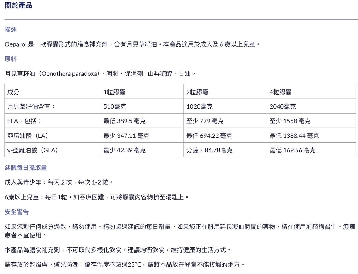• 品名: Oeparol 月見草籽油膠囊 60粒裝